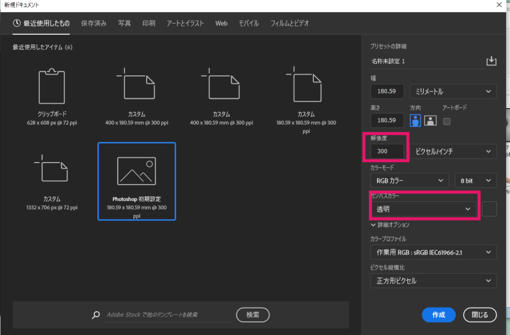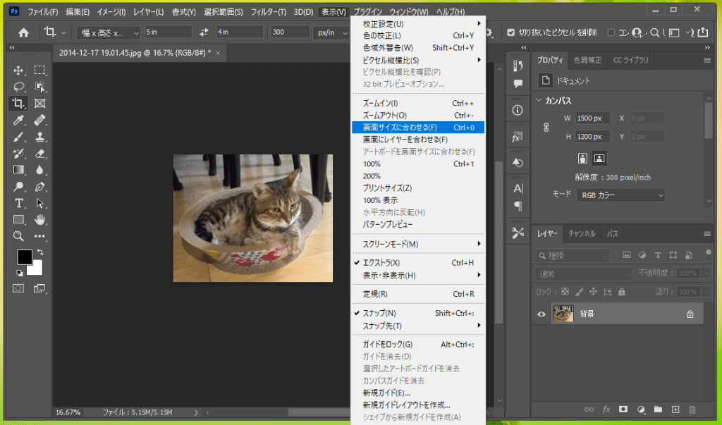取り込んだ(開いた)ファイルは画素数が小さいので投稿ガイドラインどおり300ppiに修正する