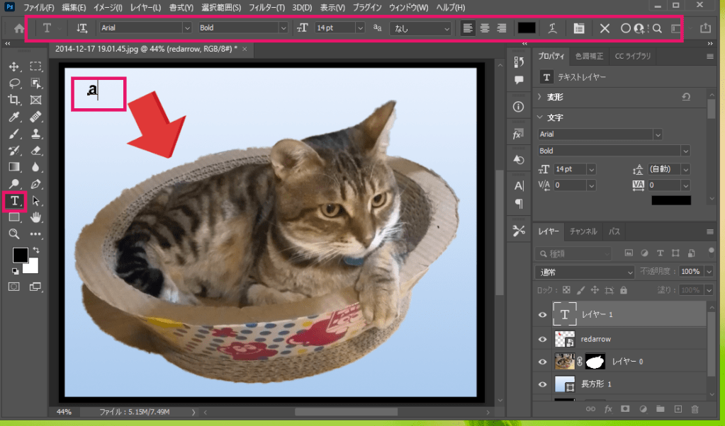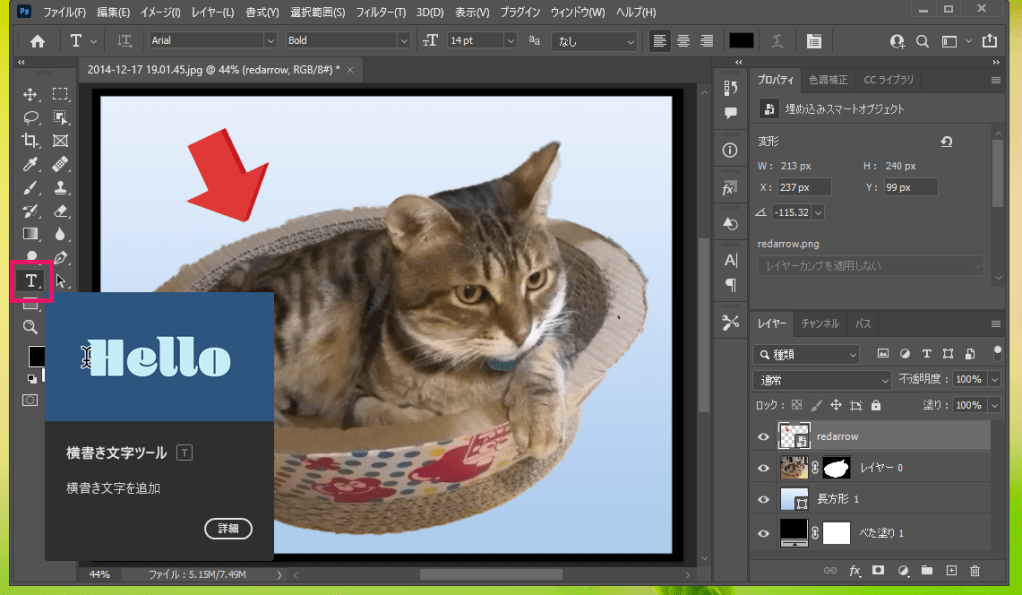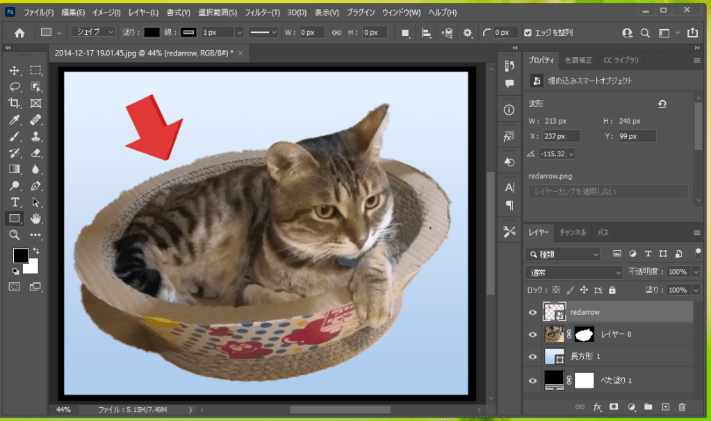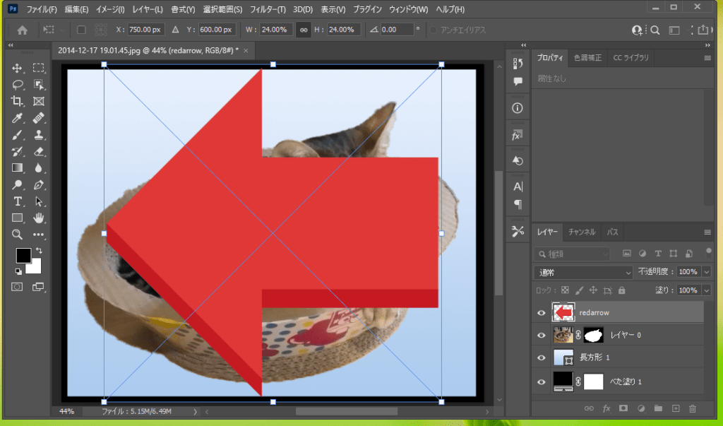4. 埋め込みPng画像「赤矢印」を挿入、大きさ/向き/角度を整える