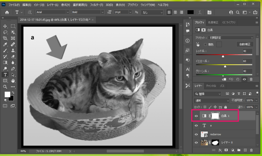9. 白黒レイヤーを作成、「カラー⇔白黒」を使い分ける