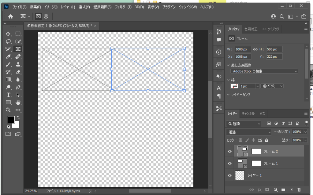 キャンバス上で左上から右下にドラッグしながら二つのフレームを描きます。